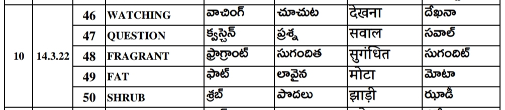 Learn A Word A Day Action plan for 16.03.22 to 15.04.22 వరకు ఒక వర్డ్ ఒక రోజు యాక్షన్ ప్లాన్. నిఘంటువును ఎలా ఉపయోగించాలి - వివరించబడింది. 16.03.22 నుండి 15.04.22 వరకు తరగతుల వారీగా పదాల జాబితా అందుబాటులో ఉంది.