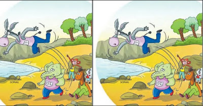 ఏనుగు వెనకాల నుంచి తంతే.. ఆ గాడిద నీళ్లలో పడిపోయింది. జంతువులన్నీ చూసి ‘ఇది జంబోపంచ్’ అంటూ నవ్వాయి.